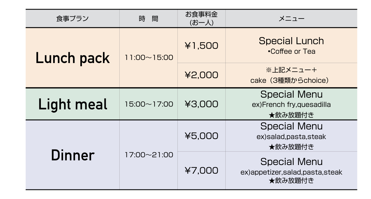 プランB「スタジオ利用+1時間無料プラン」+「お食事プラン」
